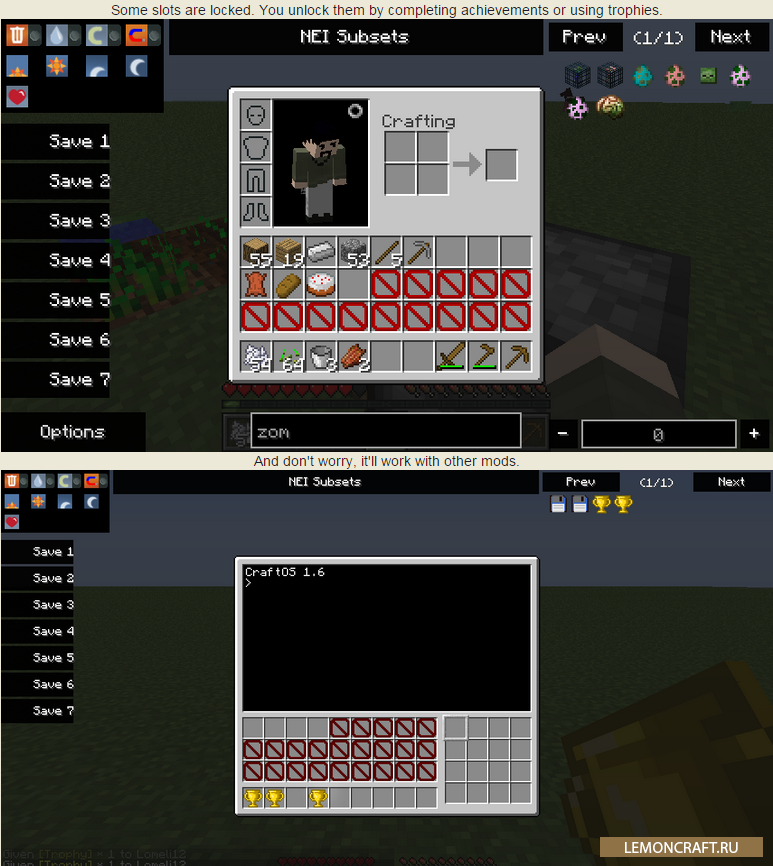 Когда вы установите мод Trophy Slots все ваши слоты для хранения инвентаря будут заблокированы. Останется только слот хот бара. Для разблокировки дополнительных слотов вам нужно развиваться в игре и выполнять различные достижения. В итоге начинать игру будет сложнее, но немного интереснее.
